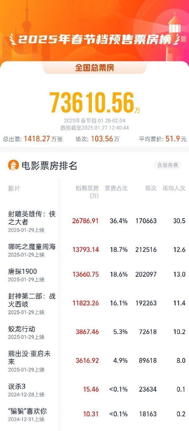 已超客岁春节档最终预售票房得益