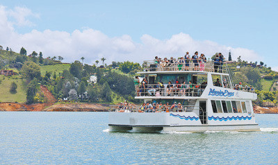 哥伦比亚安蒂奥基亚省的瓜塔佩市,游客在乘船游览佩诺尔—瓜塔佩水库。 本报记者 时元皓摄