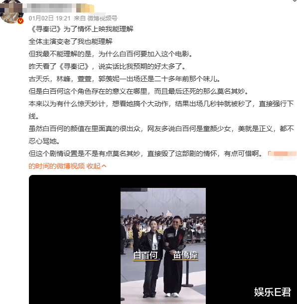 许多网友王人合计举座拍得可以,情感拉满,但对白百何的东谈主设感到难受其妙,不懂她为什么要加入这部电影。