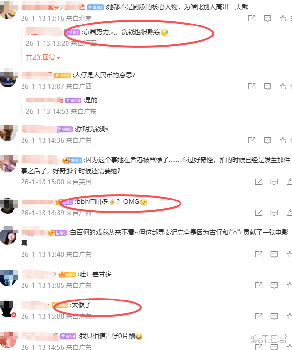 更有一些网友从心脏的角度揣测:“京圈势力大,洗钱也很老练。”“带资进组,是有东谈主投资洗钱吧?”“她王人不是中枢东谈主物,为啥比别东谈主逾越一大截。”但也有一些网友合计太假了,只慑服古天乐是0片酬。
