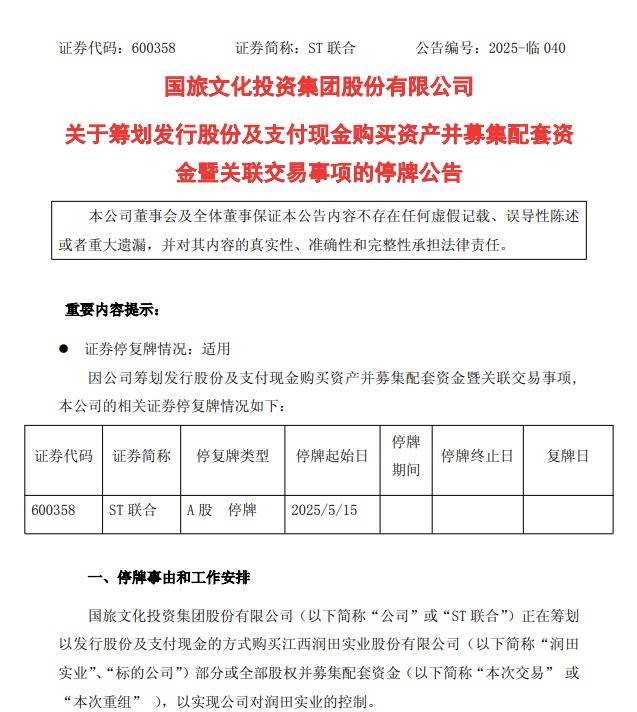 此外,2025年3月18日,上市公司因财务推崇存在诞妄纪录而被膨胀其他风险警示,A 股股票简称由“国旅连合”变更为“ST 连合”。